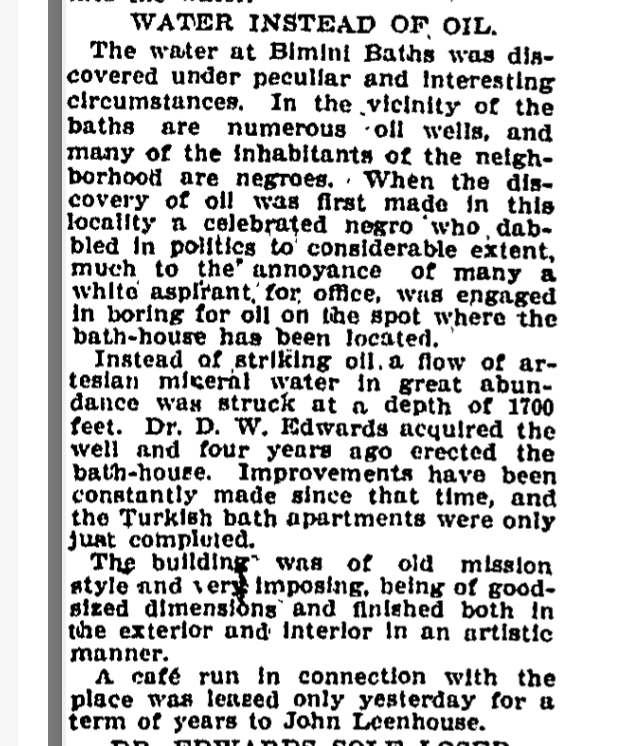 After Doheny’s discovery, a prospector, believed to be African American and who lived in the neighborhood, drilled up hot water near present day Beverly and Vermont. We don’t know his name and we don’t know how he may have been cut out of the LA power structure by racism but he sold the land to a dentist, Dr. Edwards, who was a white man with a big plan.